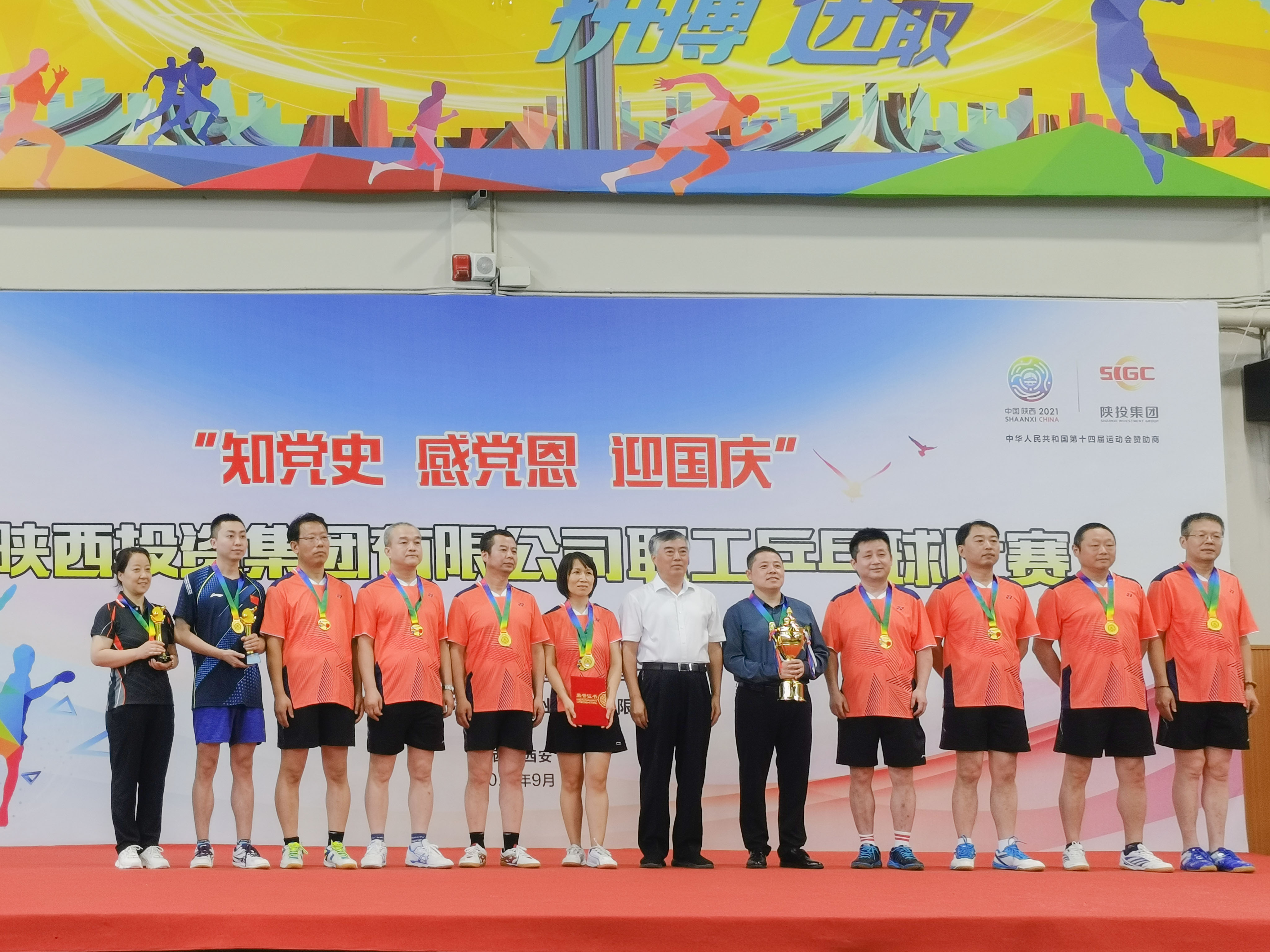 9月30日,集團(tuán)公司工會(huì)舉辦的“知黨史、感黨恩、迎國(guó)慶”職工乒乓球比賽在金信實(shí)業(yè)職工運(yùn)動(dòng)中心落下帷幕。由工會(huì)主席韓宏友擔(dān)任領(lǐng)隊(duì)的公司乒乓球隊(duì)經(jīng)過頑強(qiáng)拼搏,一路所向披靡殺進(jìn)決賽,從集團(tuán)系統(tǒng)26支隊(duì)伍中脫穎而出,取得混合團(tuán)體冠軍!