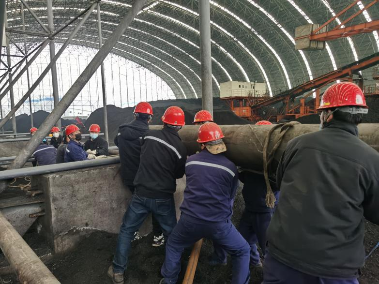 商洛項目部黨支部組織開展“戰(zhàn)疫保供一線,黨旗高高飄揚”煤場排雨母管倒運主題黨日活動,助力保電保熱。寒冷的煤場里,卻是如火如荼的景象,由于煤場內(nèi)無法使用起吊設(shè)施,直徑450mm的管道只能靠人力移動、安裝至指定位置。大家喊著號子,使出渾身力氣,管道也只能微微前進一點。一米、兩米……沉重的管道逐步就位。
