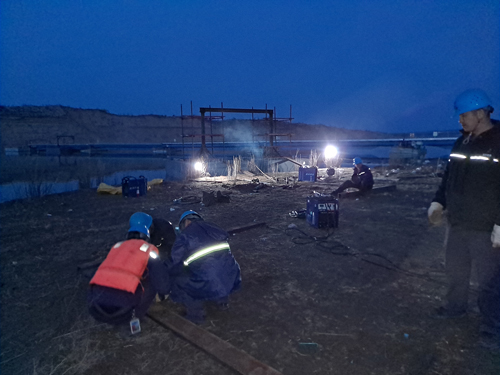 由于水源地區(qū)域缺乏大型水面起吊船只,沒有專業(yè)水下作業(yè)隊伍,陜北的室外幾乎每天都有5級以上的大風(fēng)帶來漫天沙塵,搶修工作面臨著極大困難。水源地區(qū)域附近沒有休息場所,項目部人員主動放棄休息,風(fēng)餐露宿,連續(xù)奮戰(zhàn),吃完盒飯就繼續(xù)投入到搶修工作中,大風(fēng)、雨雪的惡劣天氣沒有阻擋他們的工作進程,強烈的紫外線將臉曬得一層層蛻皮,大家開玩笑互稱“紅孩兒”。