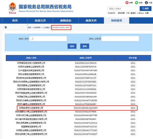 日前,在國家稅務(wù)總局陜西省稅務(wù)局開展的2021年度納稅信用等級(jí)評(píng)定工作中,公司榮獲“陜西省A級(jí)納稅人”榮譽(yù)稱號(hào)。