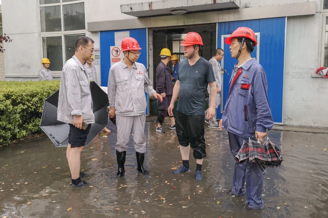 17:35,救援小組趕至防汛重點部位——燃運油庫門前時,洶涌的積水已達600mm。瓢潑大雨中,一組人員在油庫值班室、供油泵房等區(qū)域設置防水擋板,搬運沙袋進行封堵;另一組緊急加裝潛水泵、疏通排水渠道。緊緊關頭,渭電公司副總經理王聯盟、總工程師王軍泓也來到現場查看險情,指導搶險工作。
