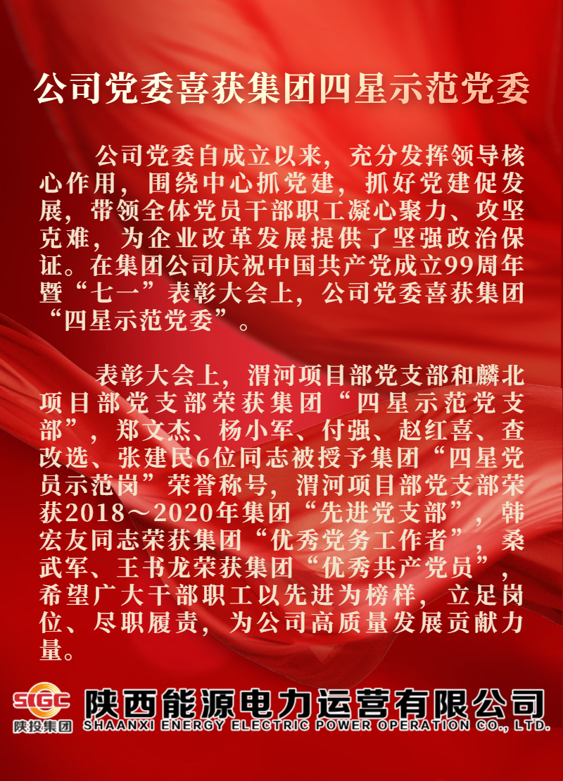 公司黨委喜獲集團“四星示范黨委”